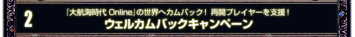 | 『大航海時代 Online』を新たに始められる皆さんと、過去に無料体験期間のみプレイされた皆さんを対象とした特典満載のキャンペーンです。 |