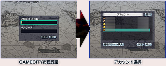 『大航海時代 Online』のアカウントを複数、登録されているGAMECITY市民IDでは、市民認証完了後、アカウント選択画面に進みます。