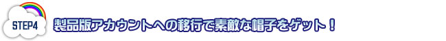 STEP2にて、“お友達様用”アイテムシリアルナンバーを使ってアイテム《ウェルカムロット》を獲得して、STEP3にて、製品版アカウントへ移行された方には、特製アイテム《テンガロンハット》をプレゼントします!