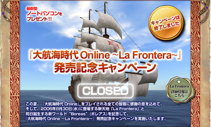 『大航海時代 Online〜La Frontera〜』が快適に動作する最新型ノートパソコンや、『大航海時代 Online〜La Frontera〜』パッケージ版が抽選で当たる!