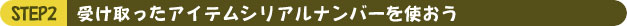 Eメールにて届いたアイテムシリアルナンバーは、ゲーム中にてご使用ください。