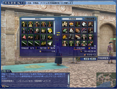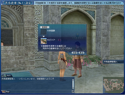 “共有倉庫”に交易品が収納されていない状態であれば、別の街にいるNPC”共有倉庫管理人”で再度、利用登録をやり直せます。 (2014/06/03 更新)