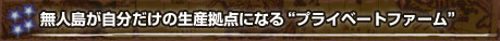 また“プライベートファーム”で採れた産出品は、いずれかの国家の本拠地ならどこでも受け取り可能で、“プライベートファーム”への開発指示は、現地まで出向かなくとも、どの街からでも行えます。