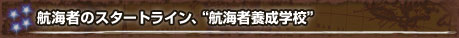 航海者としての生活を始めたばかりの方のために“航海者養成学校”が設立されます。