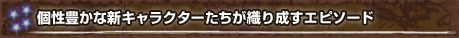 | ストーリーイベントとクエストが融合した形の新しいシステムを用いて、個性豊かな新キャラクターたちと航海者(プレイヤー)がストーリーを織り成していくのが“エピソード”です。東南アジアと中米アステカを舞台に、新キャラクターたちの様々な思惑が交錯しながら展開されるシナリオに、是非ご期待ください。 |