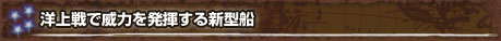 | 砲撃性能の強化に主眼をおいた新型船や、戦闘支援を得意とする新型船をご紹介します。 |