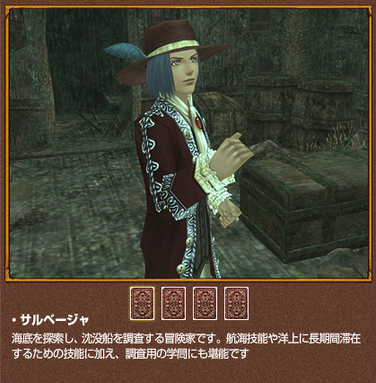 新システム“沈没船の引き上げ”を得意とする“サルベージャ”を始め、4種類の新たな職業が登場します。これによってゲーム内で就くことができる職業は全63種類となり、さらに多彩な“航海者としての生き方”を体験できます。 |