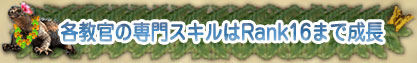 新たな職業“冒険教官”、“商業教官”、“海事教官”のいずれかに就いている場合、それぞれの専門スキル“生存”、“運用”、“統率”について、Rank16まで成長させられます。
