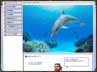 また、後述の「@Web」サービスの専用コンテンツ“ドルフィンガーデン”で、イルカと友達になっていると、そのイルカがゲーム内に現れるようになります。