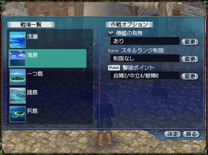戦場を浅瀬、海原、一つ島、諸島、列島の5つの中から選択できます。