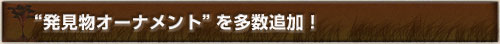 「Cruz del Sur」Chapter2「Special Ornaments」から登場した“発見物オーナメント”に石像や器、花など、新たな種類のオーナメントが多数追加されます。 |