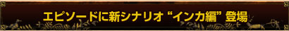 これまで“中米アステカ編”、“東南アジア編”とお送りしてきたエピソードに、新たなシナリオ“インカ編”が追加されます。“インカ編”では新キャラクターが登場し、航海者の職業系統ごとに異なったストーリーが展開していきます。 |