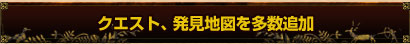 | 新海域を舞台とするものを中心に、多数の新たな発見地図と100種以上のクエストが追加されます。 |