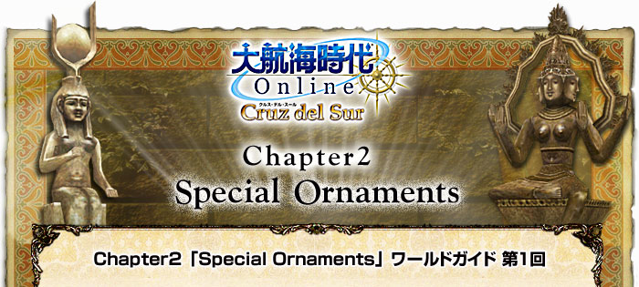 ornament(オーナメント)とは装飾品のことで、“特別な装飾品”とは『大航海時代 Online』での冒険の成果である“発見物”を指します。Chapter2では“発見物”を装飾品としてアパルタメント内に展示できるようになる新機能をメインとして、様々な新要素が導入されます。