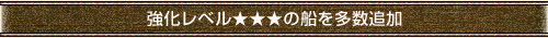 “ジョイントビルド造船”の強化レシピが追加され、強化レベル★★★の船が多数追加されます。 |