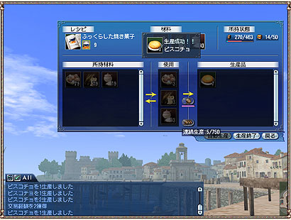 生産画面から[連続生産]ボタンを1回押すだけで、材料か行動力が尽きるまで生産し続ける機能が追加されます。 |
