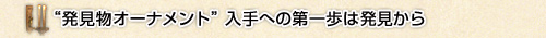 まずは“発見物オーナメント”の材料となる“発見物カード”を獲得しましょう。 |