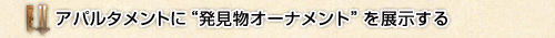 “発見物オーナメント”を展示できる数は、アパルタメントの改装ランクによって異なり、改装ランクが高いほど数多く展示できます。 |