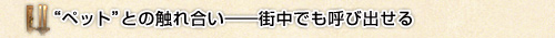ペットを飼育している状態で街中などでエサを使うと、ペットを呼び出せます。 |