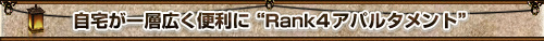 “Rank4のアパルタメント”は部屋の面積が広く、凝った造りになっていて、アイテムの収納数とマネキンの設置数も増加しています。さらに“発見物オーナメント”も数多く設置できます。 |