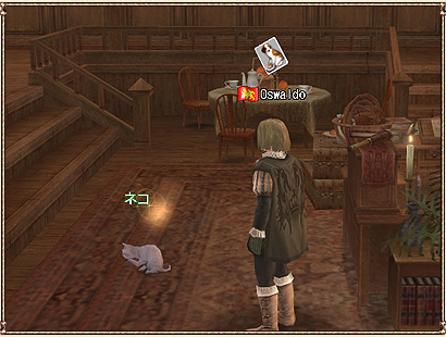 そしてペットの近くでエサを使うと、エサを与えられます。与えたエサがペットの好物だった場合、ペットは喜ぶしぐさを見せ、徐々に親密になっていきます。 |