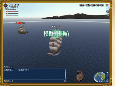 模擬戦では、大海戦の戦闘と同様、悪名や敵対度が上がらず、アイテムを奪われたりすることもないので、気軽に対人戦演習が可能です。