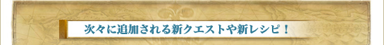 さらに、武器を段階的に強化するレシピ、発見クエストでのみ手に入る珍しい装備品の生産レシピなど、新たなコンセプトのレシピも導入されます。