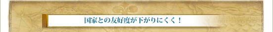 | 国家との関係が「平常」以上の場合、友好度が下がりにくくなるように変更されます。これにより、良くなった国家との関係を保ちやすくなります。 |