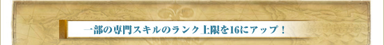 大規模アップデートChapter5「Menace of Ottoman」で実施したスキルランク上限の引き上げに続き、以下のスキルについて、専門スキルの職業に就いている場合にRank16まで成長させられるようになります。