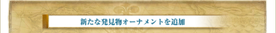 “ダリア”や“オーキッド”といった花のオーナメントを始め、様々な発見物オーナメントが追加されます。