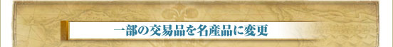 既存の交易品のバランス調整の一環として、ヨーロッパの本拠地で取引されている《水銀剤》や《西洋甲冑》など、一部の交易品が名産品になります。今後も交易品のバランス調整は行っていきます。