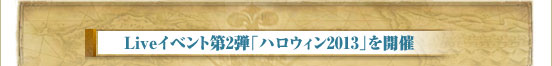 第1弾に続き、10月22日(火)から11月5日(火)まで、Liveイベント「ハロウィン2013 〜おかしどろぼうを追え!〜」を開催します。ハロウィンの怪物に扮し、子供たちの笑顔を守るため、悪い人間を懲らしめましょう。詳細は後日お知らせいたします。