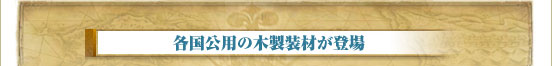 これまで金属製のみだった国ごとの公用装材(船体の材質)に“木製”が追加されます。耐久力より、速度性が重視された材質で、冒険船や商船に向いています。また、NPC生産に木製の公用装材のレシピを追加します。