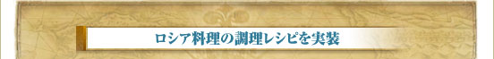 サンクトペテルブルクのNPCに、ロシアの伝統料理の調理レシピが実装されます。また、既存のレシピアイテムや自宅生産についても、レシピの追加を行います。
