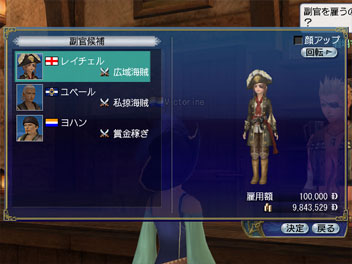 海賊島“ポートロイヤル”の酒場で副官が雇えるようになります。いずれも様々な戦闘向けスキルを有した武闘派です。