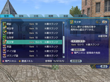 錬金術と天文学のスキル上限を、それぞれRank15まで引き上げます。