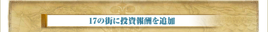 これまで投資報酬がなかった一部の街(各国の領地を含む17ヶ所)に、投資報酬を追加します。