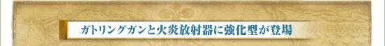 近代的火器“ガトリングガン”と“火炎放射器”に、さらに強化を施したものが加わります。また、これらの攻撃を防ぐ“防壁”にも強化型が登場します。これらは産業革命都市で生産できます。