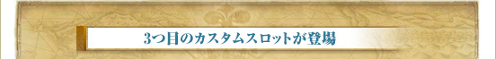 従来、2つあったカスタムスロットに3つ目が登場します。現状のカスタムスロット同様、スキルやアイテムを登録して使用できます。