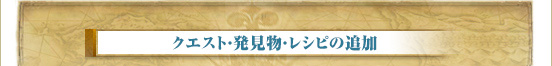 新たな発見物を見付けるクエスト・発見地図や、財宝地図、自宅生産レシピが追加されます。