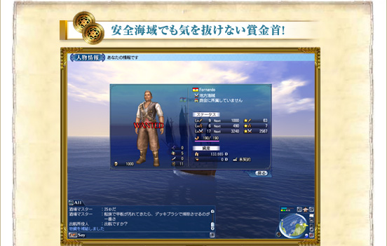 賞金首となった海賊プレイヤーが相手ならば、安全海域においても罰則なしに戦いを仕掛けることができるようになります。