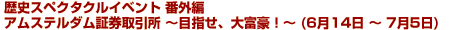 ご好評をいただきましたイベント「アムステルダム証券取引所」がパワーアップして再登場します。変動する株式の市場を見ながら、銘柄の売買を行っていきます。商人としての才覚を存分に振るってください。