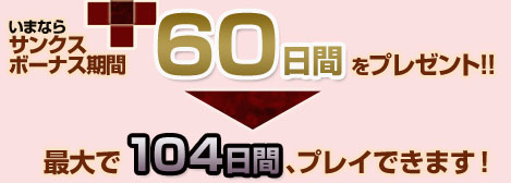 通常、『大航海時代 Online 〜La Frontera〜』スターターチケットの購入で30日間のプレイ期間を得られますが、開催期間中は、さらに60日間のサンクスボーナス期間が加算されます。