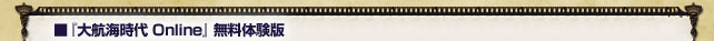 『大航海時代 Online』無料体験版(クライアントプログラム)をダウンロードし、体験版アカウントを取得することで、『大航海時代 Online』を14日間無料で体験できます(ただし、体験期間は「Cruz del Sur」と「La Frontera」専用の機能は利用できません)。