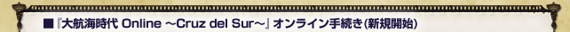 ※『大航海時代 Online 〜Cruz del Sur〜』は、『大航海時代 Online 〜Cruz del Sur〜』スターターチケット及び同アップグレードチケットによるオンラインのみでの販売となり、パッケージ版での販売はございません。 |