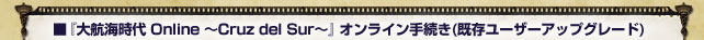 『大航海時代 Online 〜Cruz del Sur〜』アップグレードチケット(2,800円+税)をご購入ください。