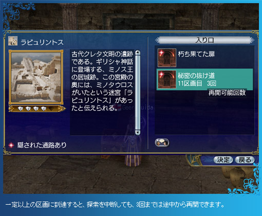 ラビュリントスでは、隠された通路から入れるフロアに、新たな特徴を持つ部屋が登場します。