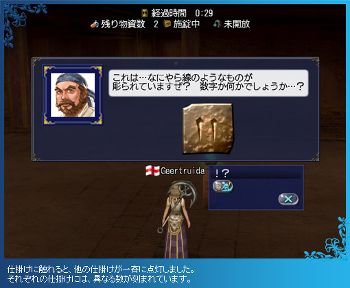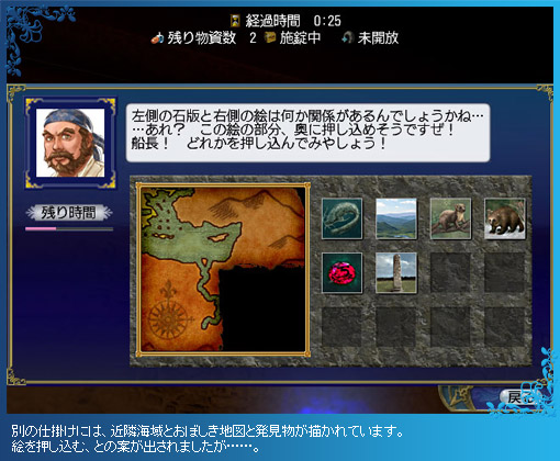 大迷宮には、航海者の行く手を阻む様々な仕掛けが設置されています。それらの仕掛けを起動するには、近隣海域に関連する知識と冷静な判断力が必要です。