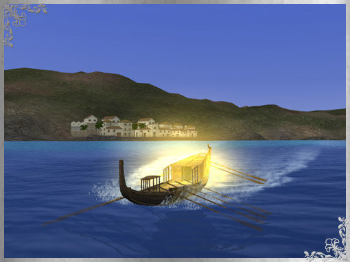 自国本拠地に係留されている太陽の船。これに乗り込むと、何かに導かれるように船は自ら移動を始めます。導かれる先は伝説のアトランティスなのか……。この先は皆さんの目で確かめてください。
