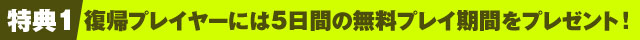 ※無料プレイ期間は、「ウェルカムバックキャンペーン」実施期間中にログインした時点を起算日として5日間です。